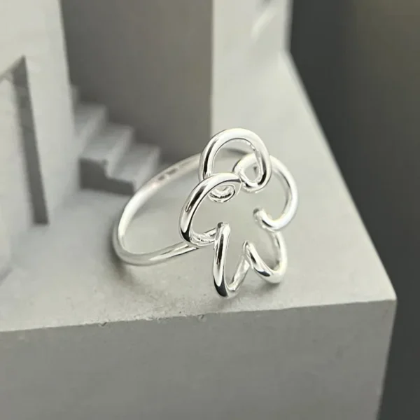 925 Sterling Silver Irregular Openwork Flower Ring...