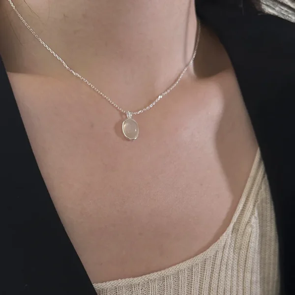 925 Sterling Silver Oval White Jade Marrow Necklac...