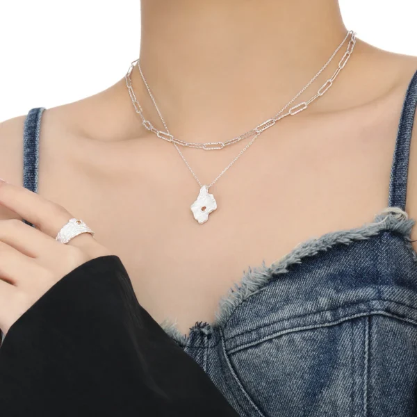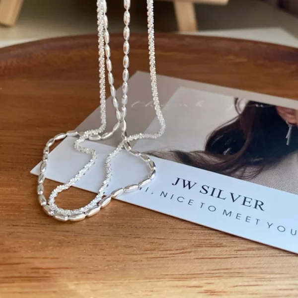 CHOZON | Sterling Silver Gypsy Rice Double-layer N...