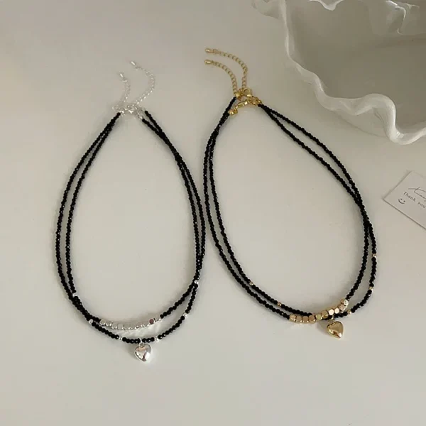 Black Crystal Metal Love Necklace Female Niche Des...