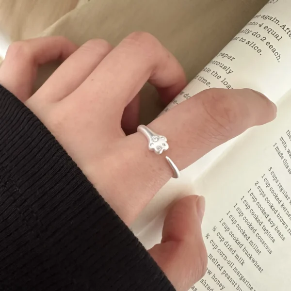 925 Sterling Silver Diamond-encrusted Cat Claw Rin...
