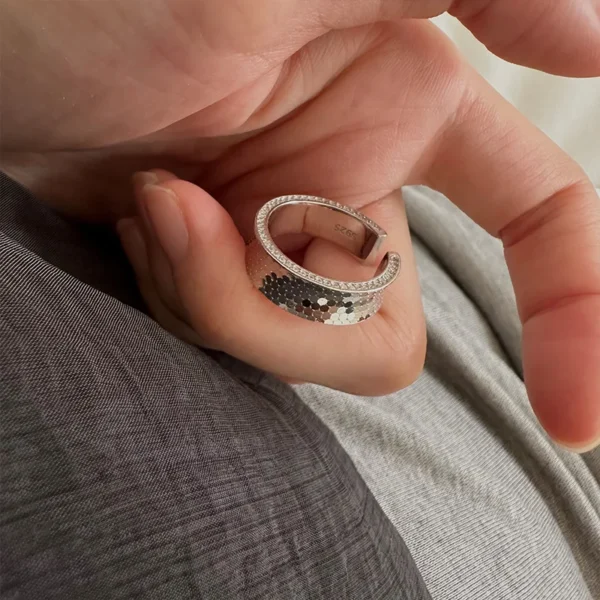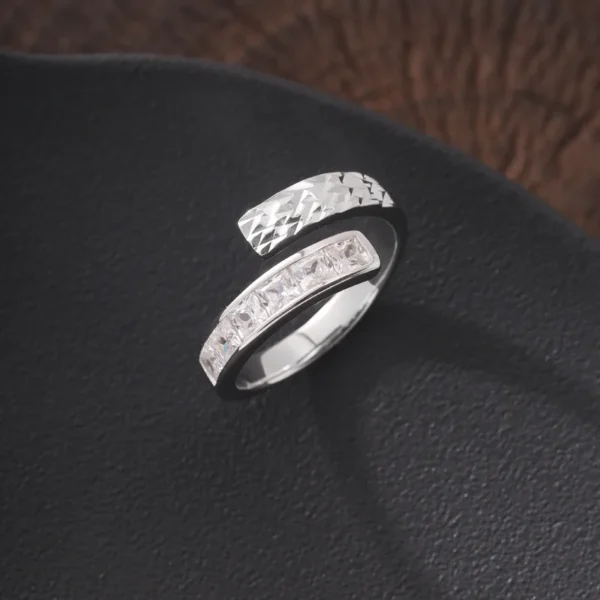 925 Sterling Silver Irregular Engraved Zircon Ring...
