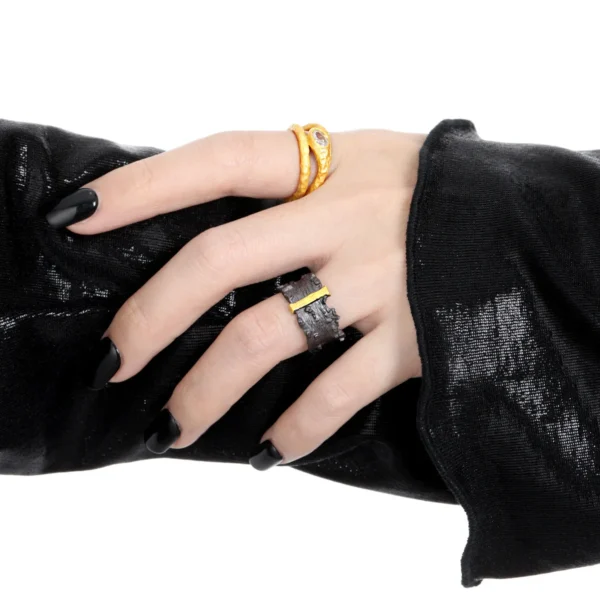 1810 CHOZON S925 Solid Silver Textured Double Ring...