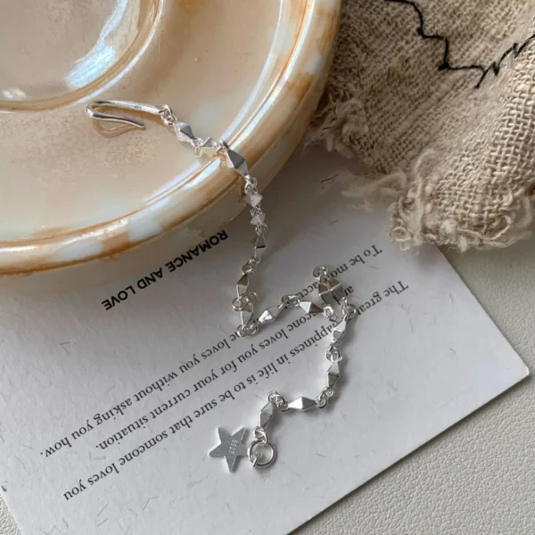 CHOZON S925 Solid Silver Star Clasp Bracelet Frenc...