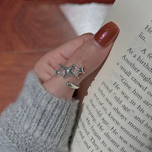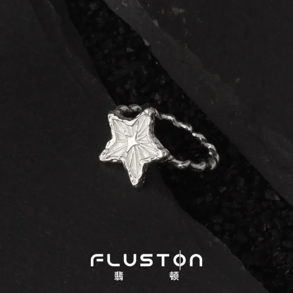 0281 CHOZON S925 Solid Silver Crinkle Star Ring Mi...