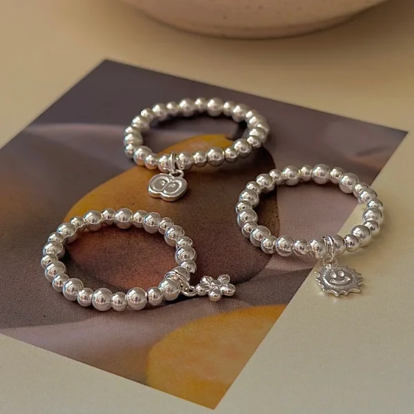 CHOZON S925 Solid Silver Beaded Ring Korean Vintag...