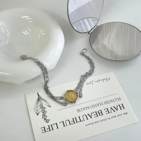 S925 Sterling Silver Ancient Coin Queen Brand Doub...