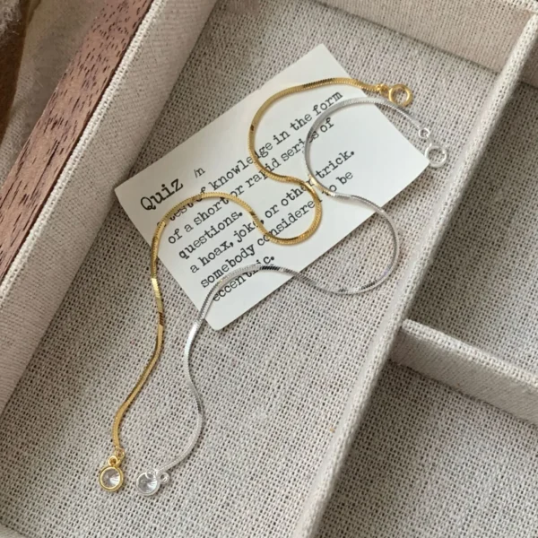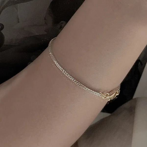 S925 Sterling Silver Flash Small Square Chain Brac...