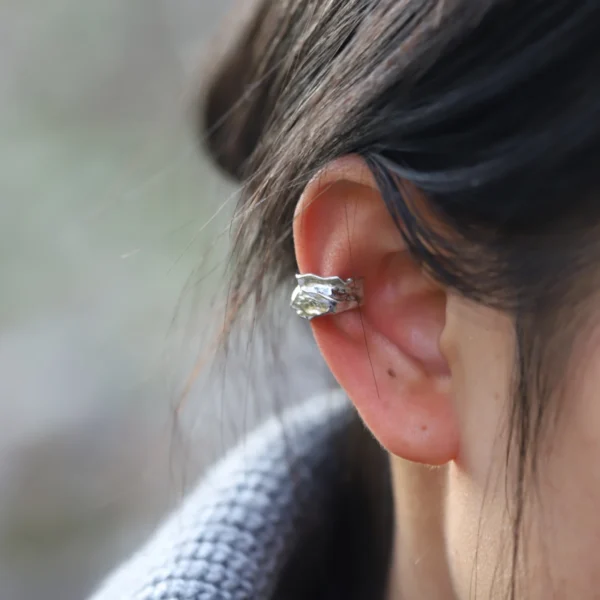 925 Sterling Silver Geometric Cuff Earrings Irregu...