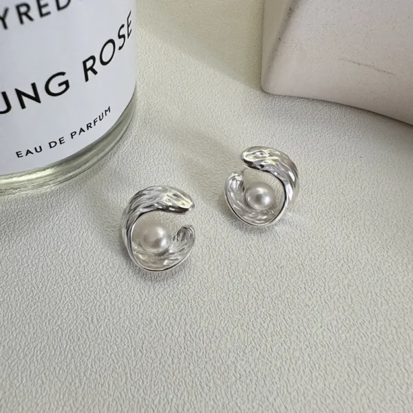 S925 Sterling Silver Korean Fashion Pearl Texture ...
