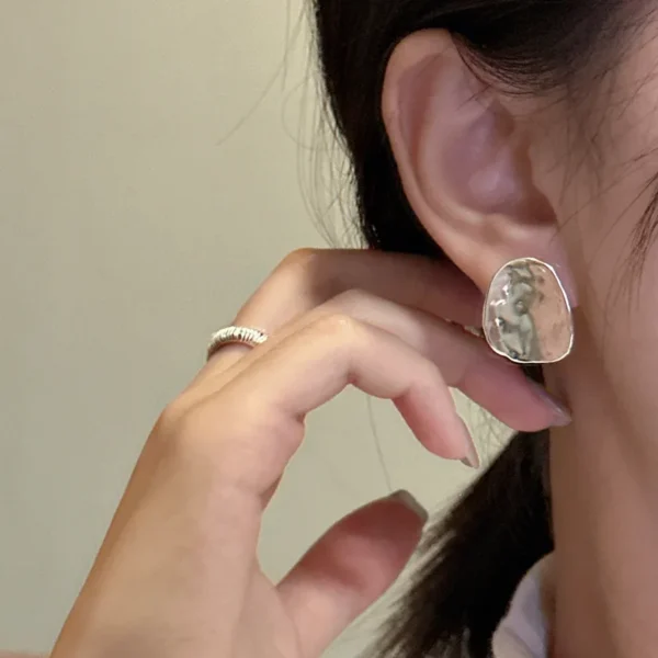 S925 Sterling Silver Korean Version Irregular Roun...