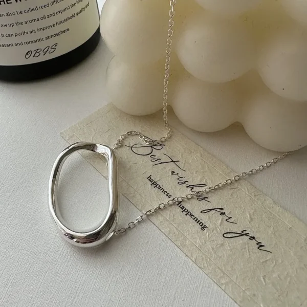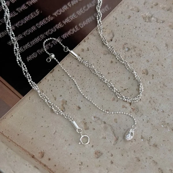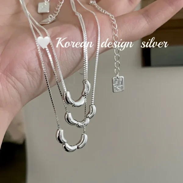 S925 Silver Oval Bead Chain Necklace Korean INS Mi...