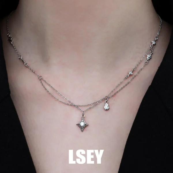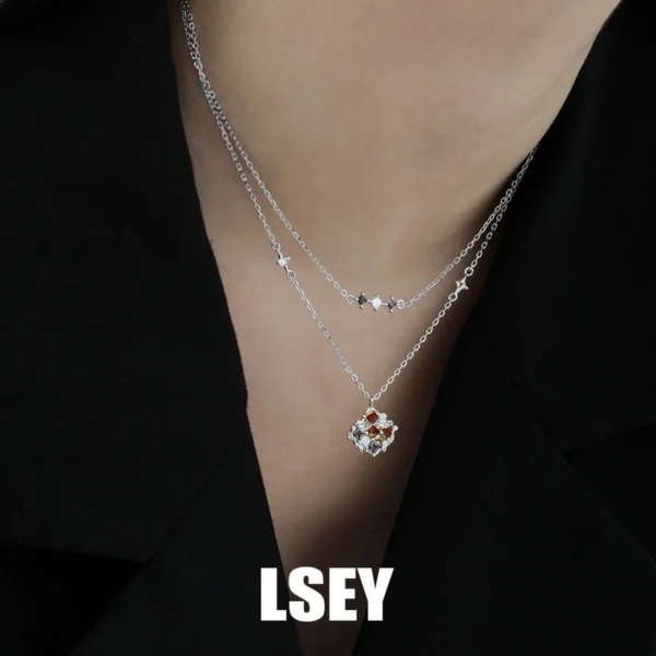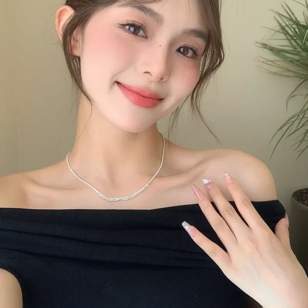 S925 Silver Multi-layer Sparkling Necklace Female ...