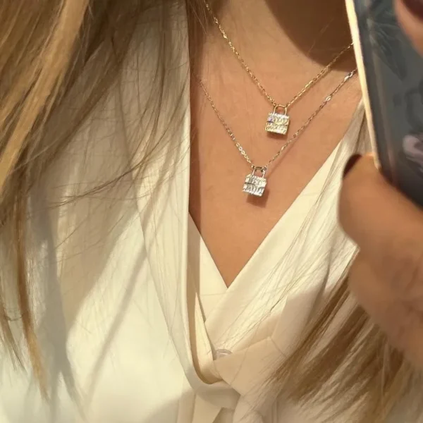 S925 Silver Gold Plated Square Zircon Lock Pendant...