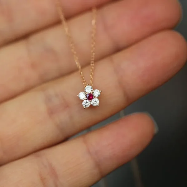 S925 Silver 18K Gold Plated Rose Red Zircon Pendan...