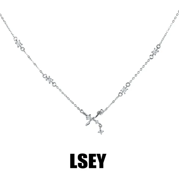 S925 Silver Gradual Change White Crystal Collarbon...