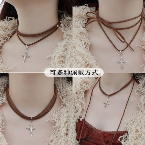 Pull-out Leather Metal Love Necklace Female Design...