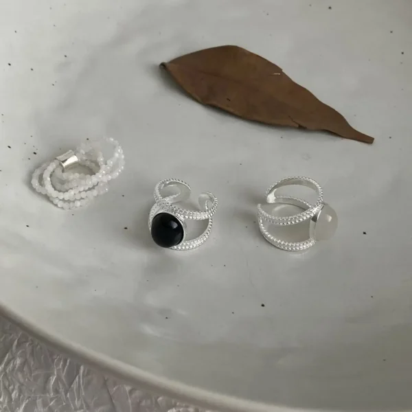 CHOZON S925 Solid Silver Black Onyx Ring French Mi...