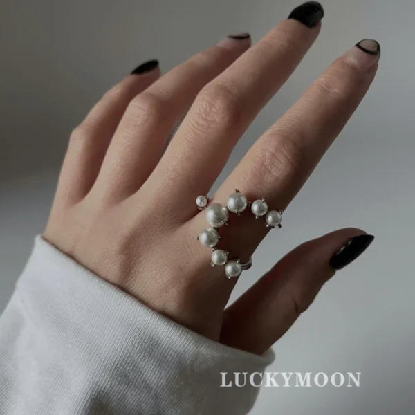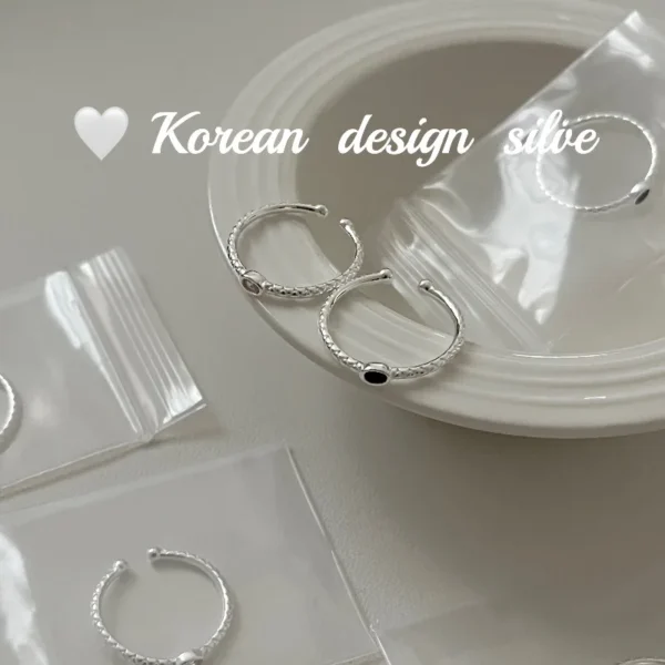 CHOZON S925 Solid Silver U-Shape Beaded Ring Frenc...