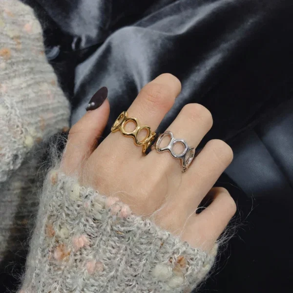 CHOZON S925 Solid Silver Two-Tone Stacking Ring Fr...