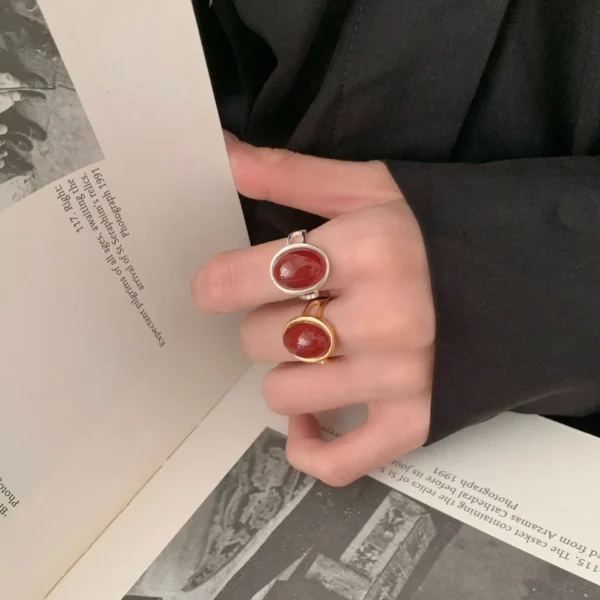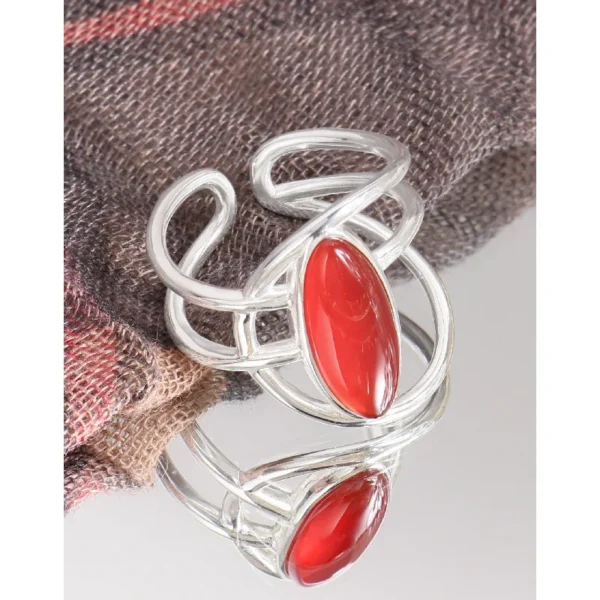 CHOZON S925 Solid Silver Red Agate Ring French Vin...