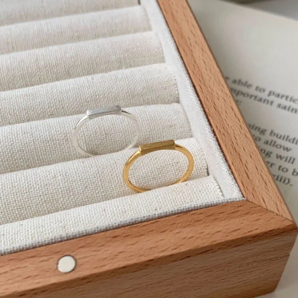 CHOZON S925 Solid Silver Brushed Rectangle Ring Fr...