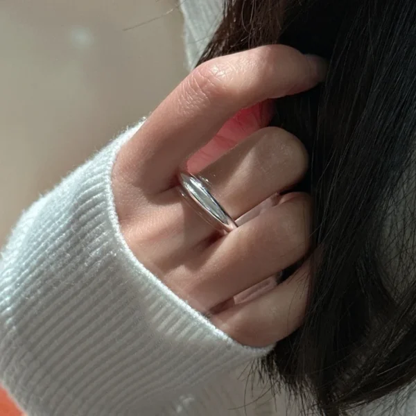 S925 Sterling Silver Smooth Big Love Ring Female S...