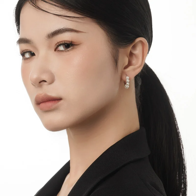 1 PCS Korean style minimalist S925 sterling silver inlaid pearl earrings for women’s fashionable geometric earrings