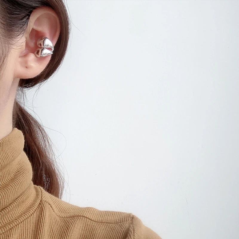 100% 925 Sterling Silver Glossy Double-Layer Ear Cuff Clip Wide Ear Bone Buckle without Piercing Fine Jewelry