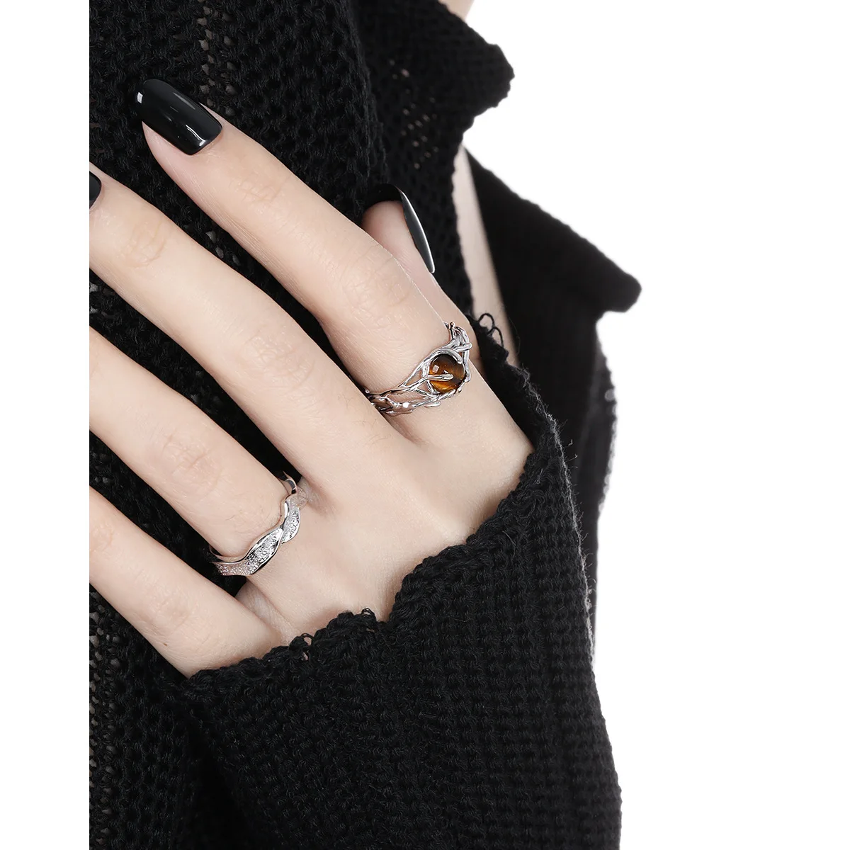 3108 Niche Original Personality High Sense Heterosexual Hollow Design Inlaid Yellow Tiger Stone S925 Sterling Silver Ring Women