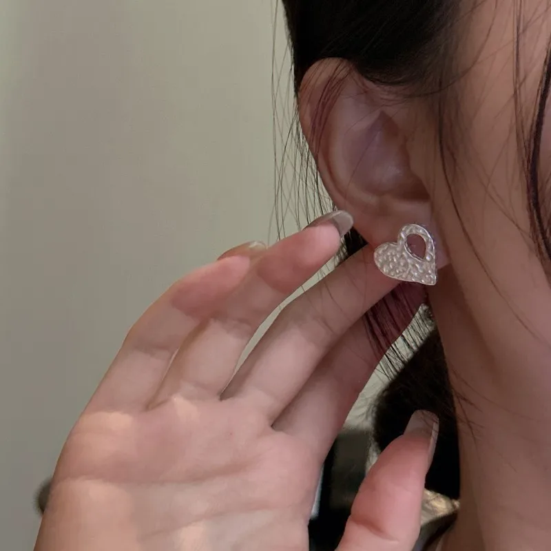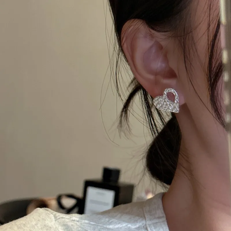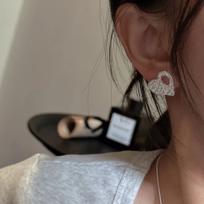 925 Silver Korean Version Matte Fashion Texture Love Retro Earrings INS Blogger Personalized Korean Ear Jewelry
