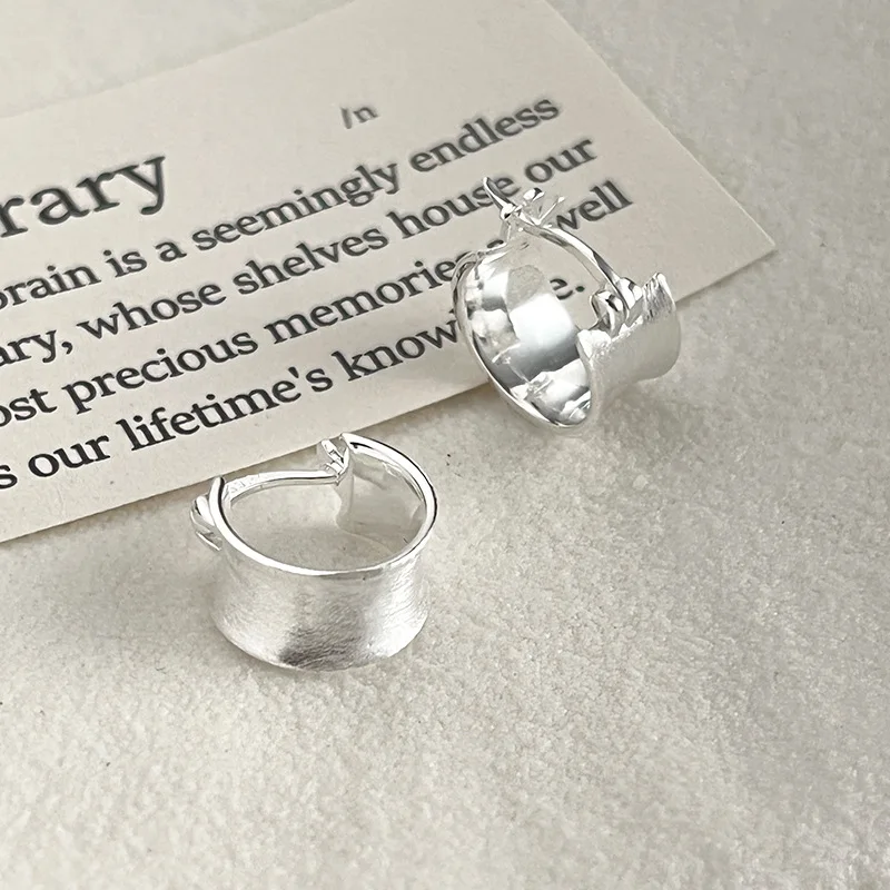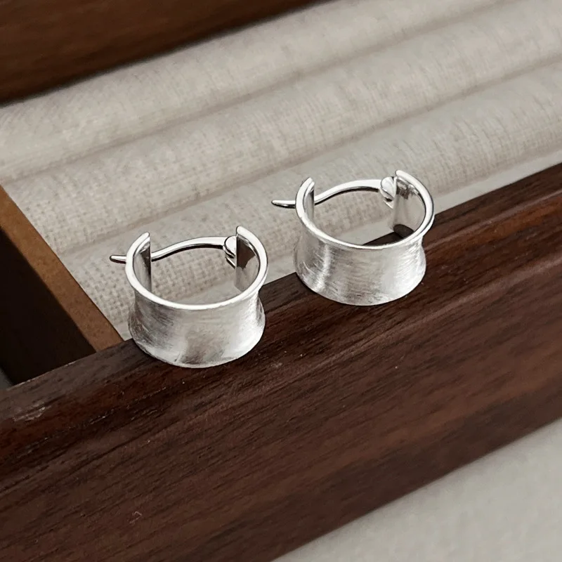 925 Sterling Silver Brushed Curved Ear Buckles Women’s Bright Silver Simple Cold Wind Temperament Versatile Personality Earrings