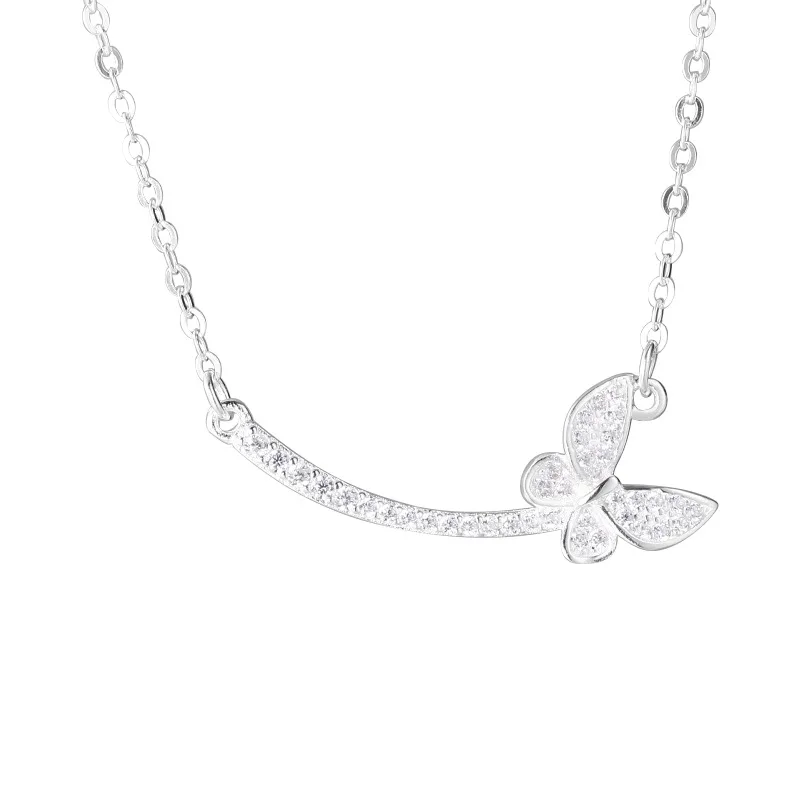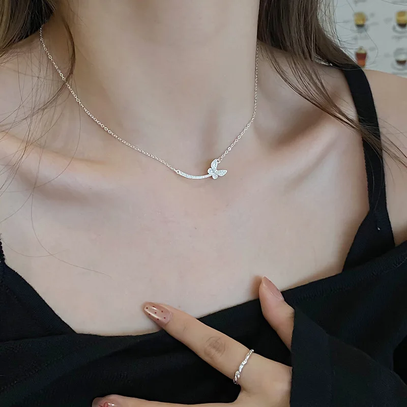 925 Sterling Silver Butterfly Diamond Necklace Female Simple Exquisite Temperament Collarbone Chain Commuter Versatile Jewelry
