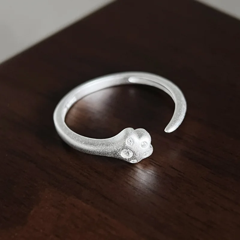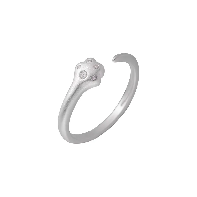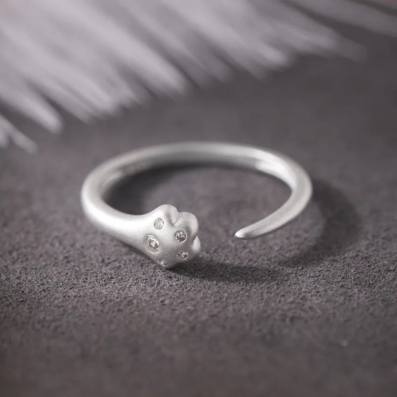 925 Sterling Silver Diamond-encrusted Cat Claw Ring Women’s Simple Matte Craftsmanship Light Luxury Exquisite High-end Open Ring