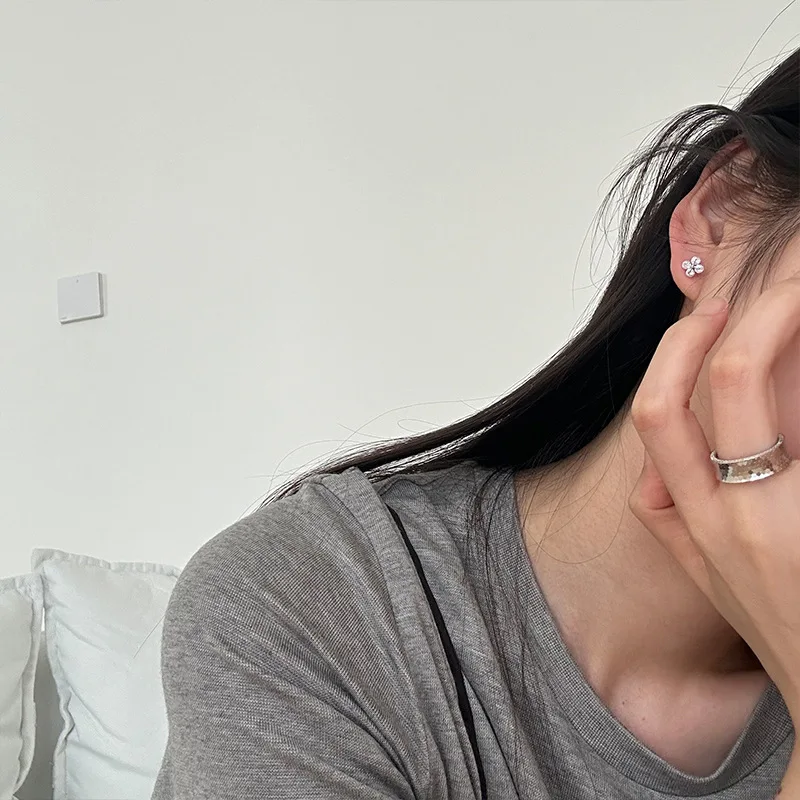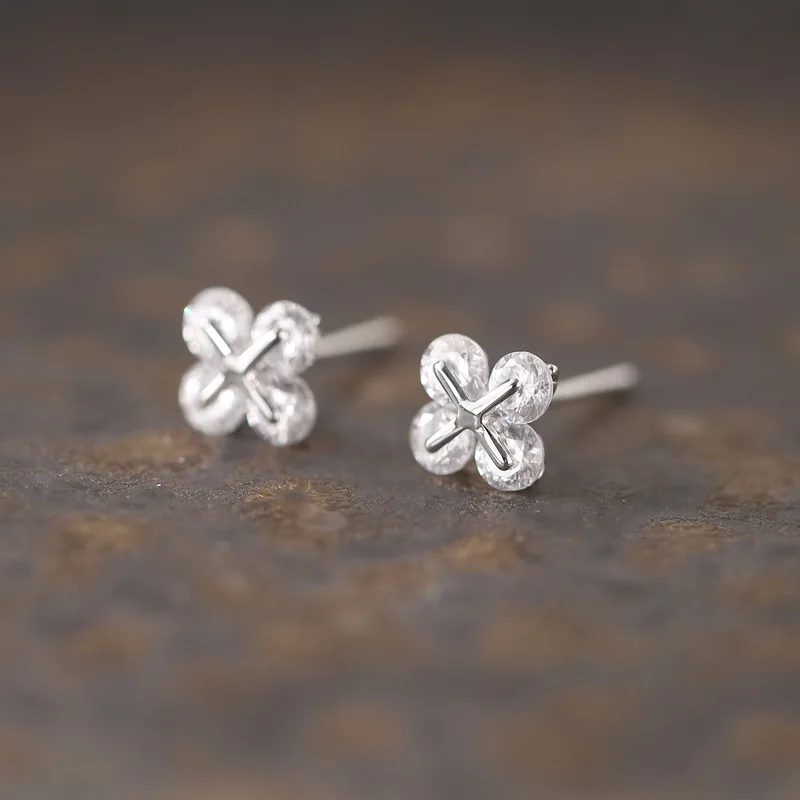 925 Sterling Silver Four-leaf Clover Zircon Stud Earrings Women’s Simple Niche Design Fashionable and Personalized Basic