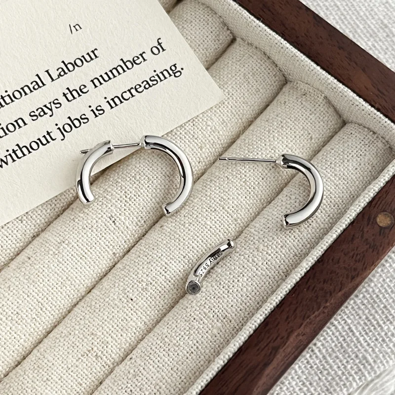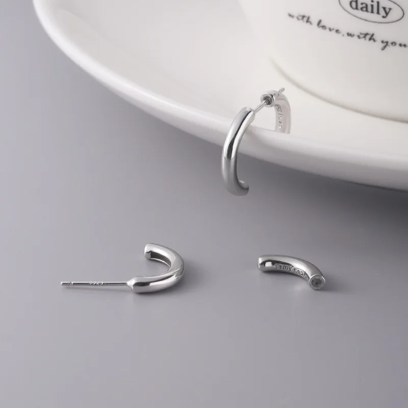 925 Sterling Silver Front Back Drop Earrings for Women Minimalist Geometric C Shape Hoops Everyday Luxury Dainty Jewelry Gift