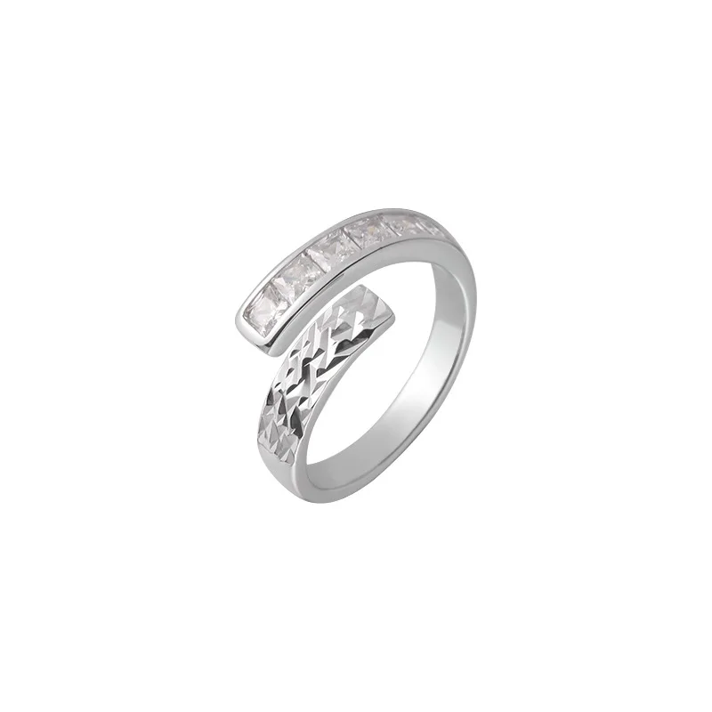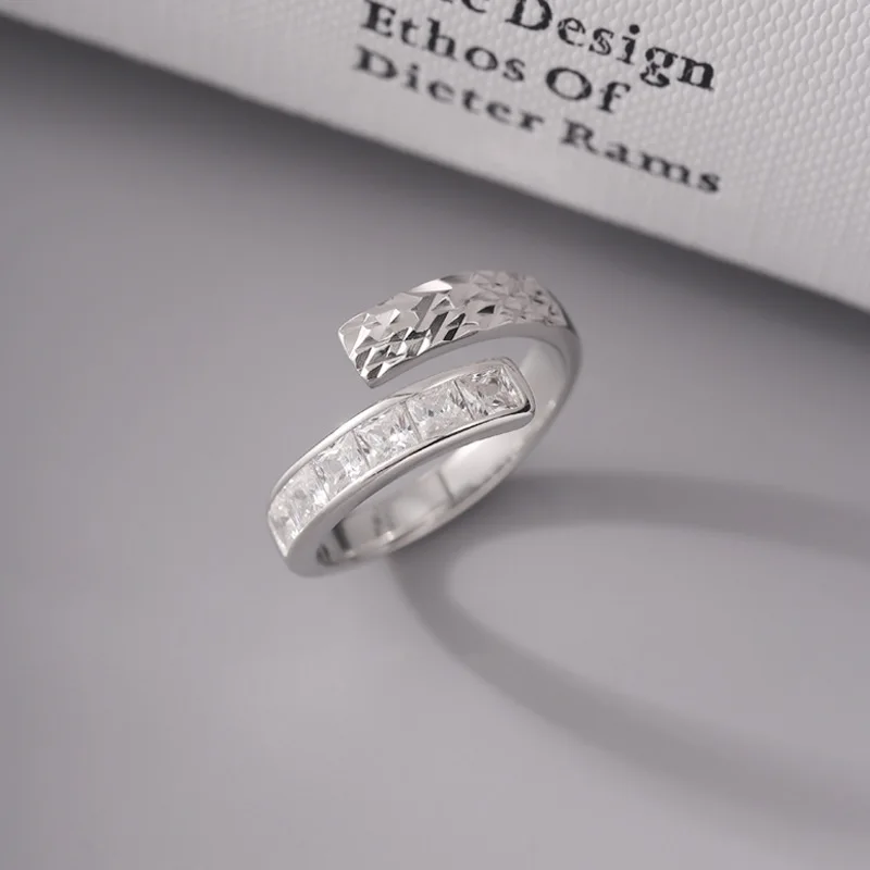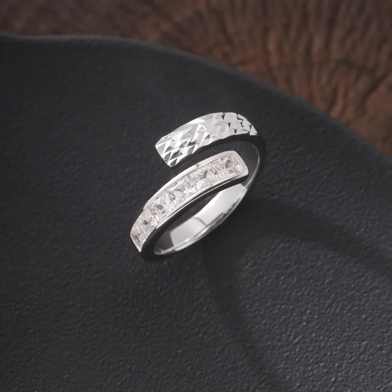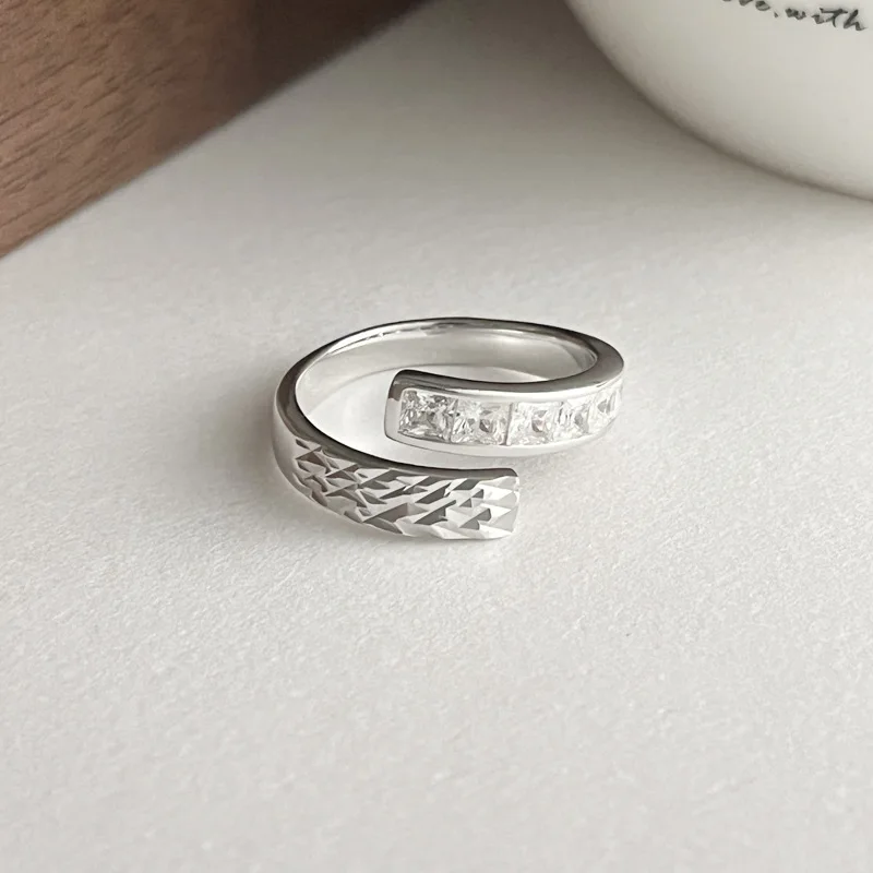 925 Sterling Silver Irregular Engraved Zircon Ring For Women Minimalist Luxury Adjustable Non-Fade Statement Jewelry Gift