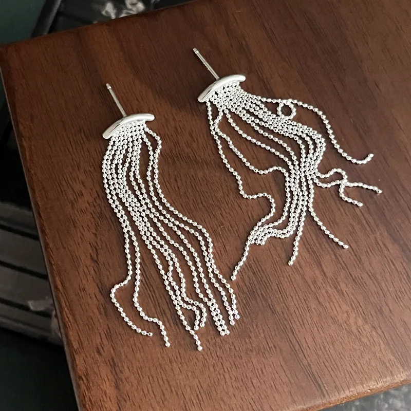 925 Sterling Silver Long Chain Fringe Earrings for Women Minimalist Drop Dangle Ear Studs Trendy Versatile Elegant Pearl Bead