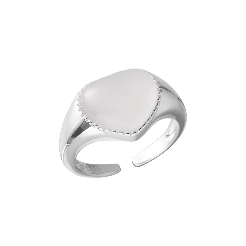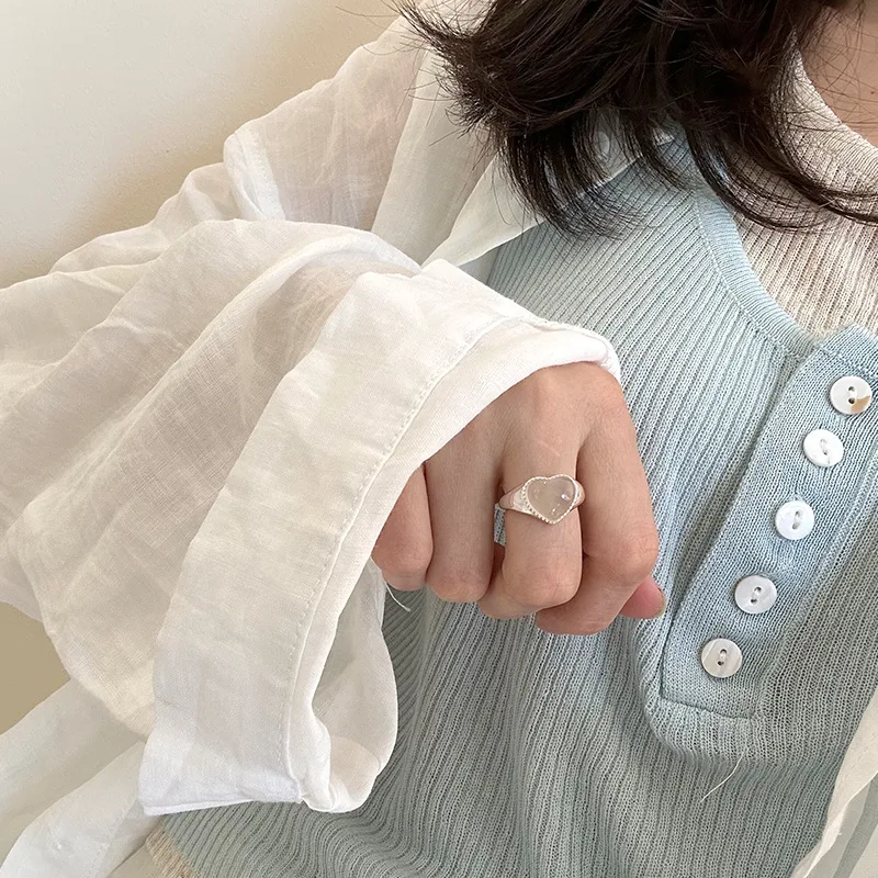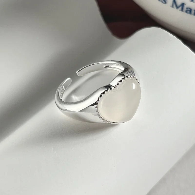 925 Sterling Silver Love Chalcedony Ring Female Simple Elegance Sweet Temperament Peach Heart Shape Opening Design Ring