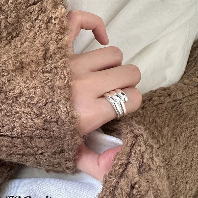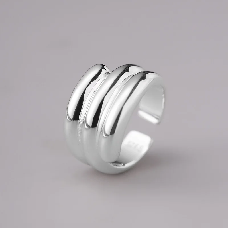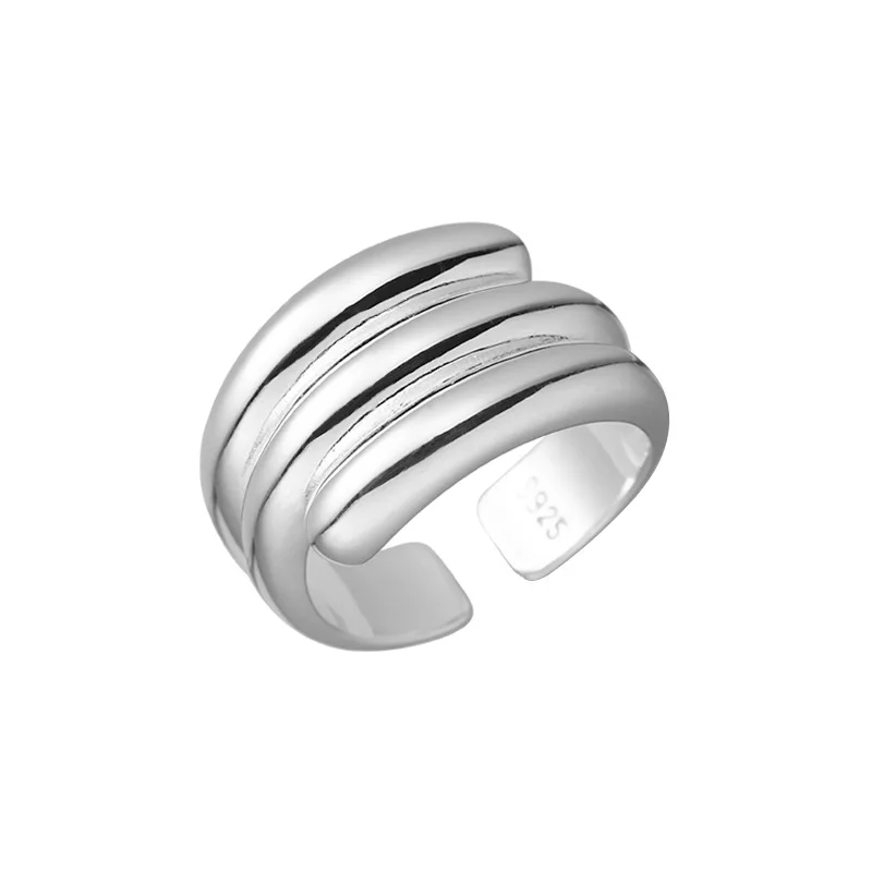 925 Sterling Silver Multi-layer Glossy Ring Female Japanese Niche Design Temperament Cold Wind Opening Ring 0138B