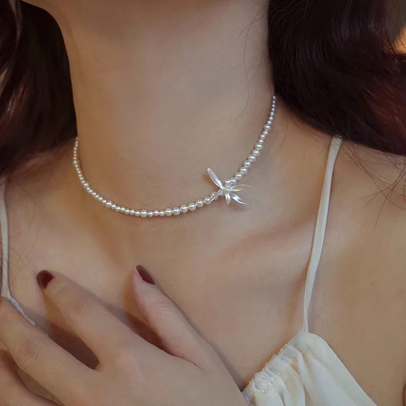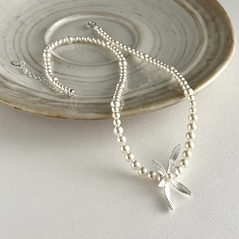 925 Sterling Silver Shijia Pearl Orchid Necklace Female Simple Chocker Temperament High-end Short Neck Chain 7131A
