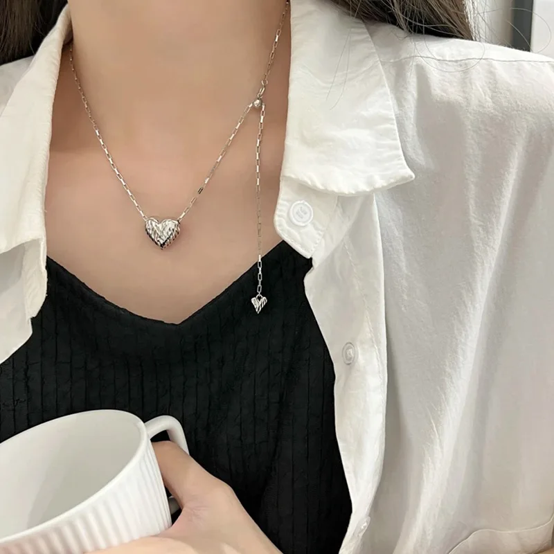 Car Flower Love Necklace S925 Sterling Silver Pull-up Heart Sweater Chain Autumn and Winter New Silver Jewelry Wholesale