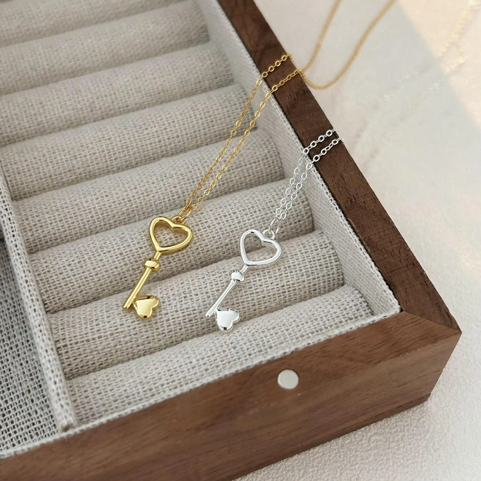CHOZON 925 Sterling Silver Love Key Necklace Simple Temperament Ins Necklace Gift