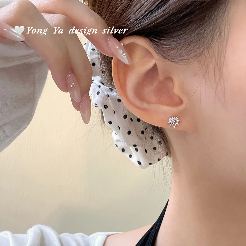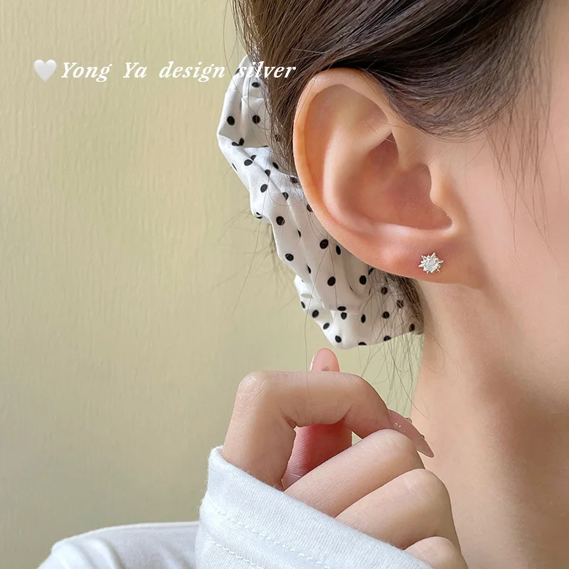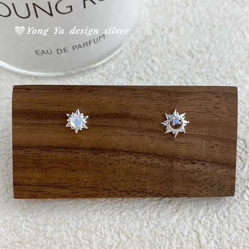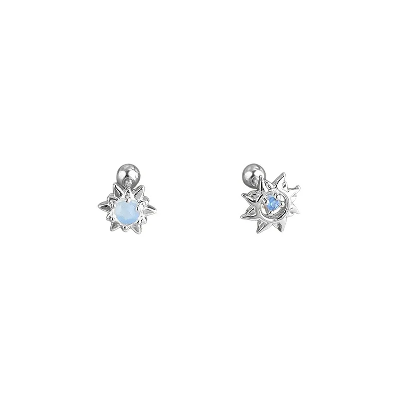 CHOZON 999 Solid Silver Sun Earrings Asymmetric Wholesale Hypoallergenic Jewelry for Women