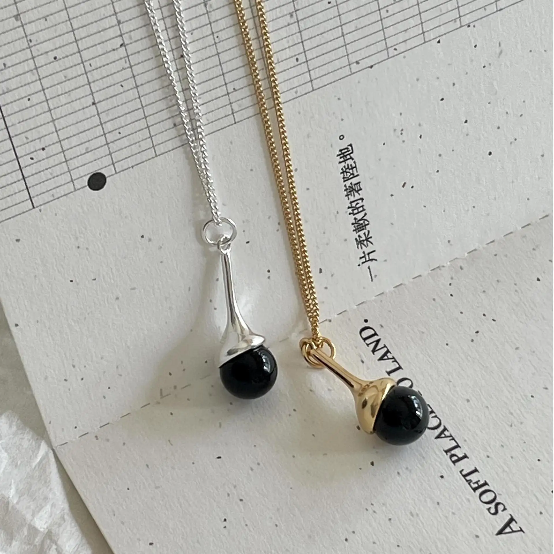 CHOZON Korea 925 Sterling Silver Black Agate Necklace Simple Temperament Ins Internet Celebrity Real Silver Factory Wholesale