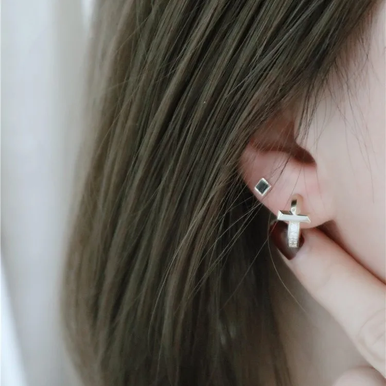 CHOZON S925 Silver 14K Gold Plated Cross Ear Cuff Zircon Minimalist 3D Statement Jewelry Gift for Women