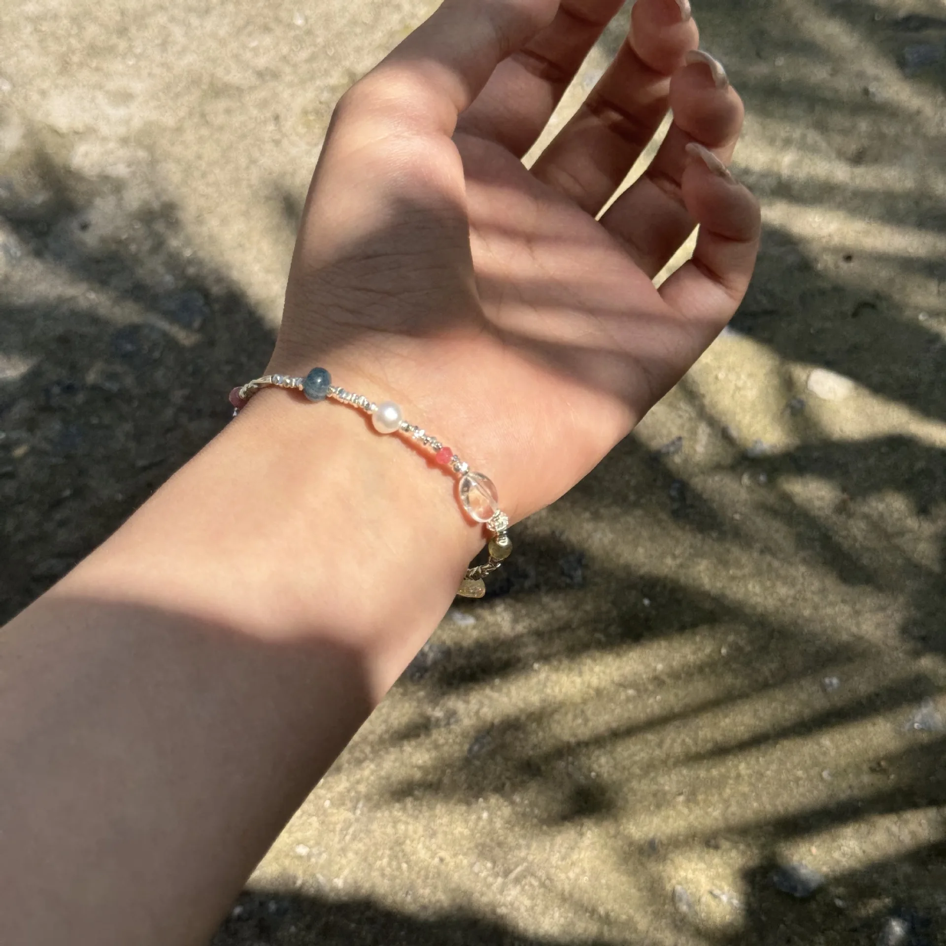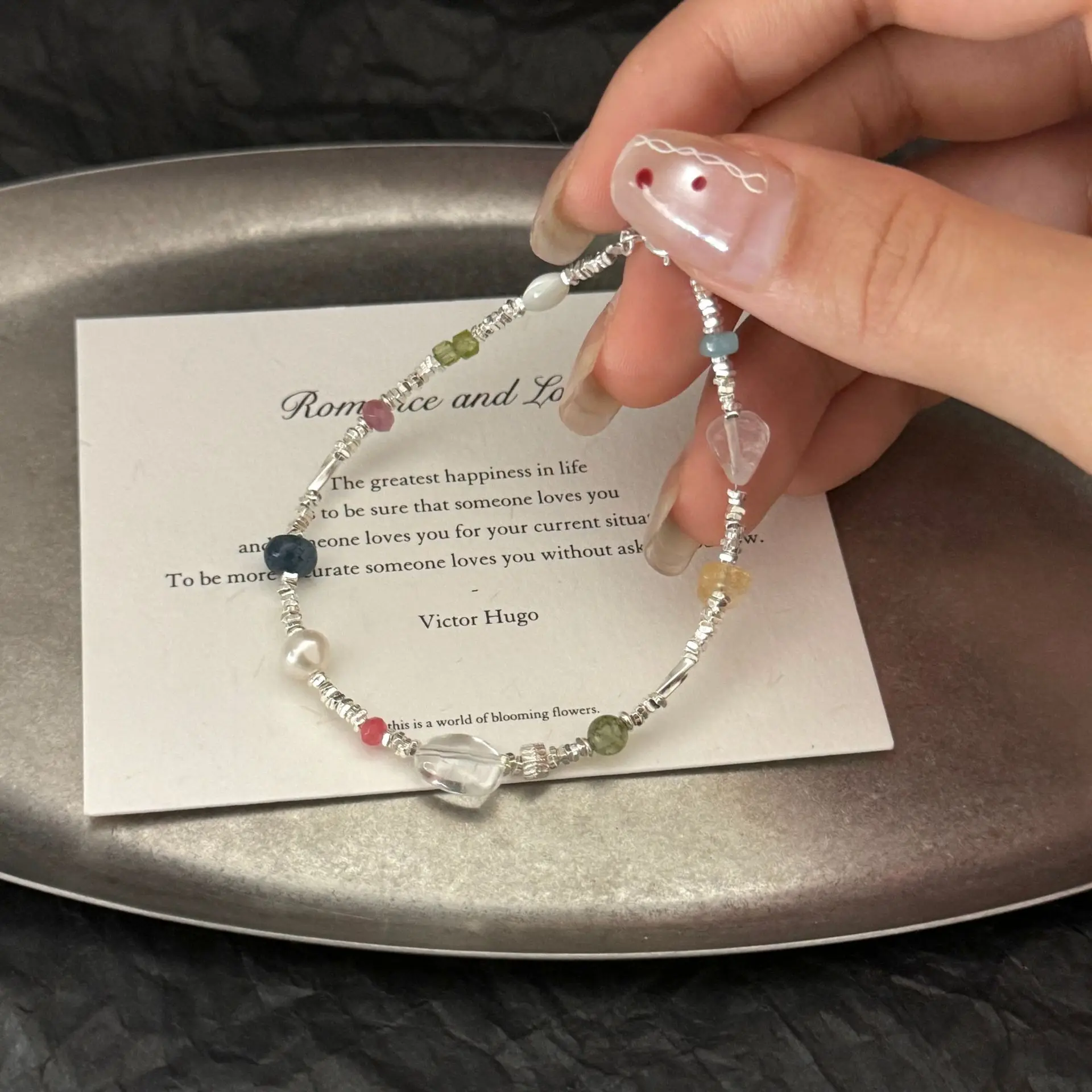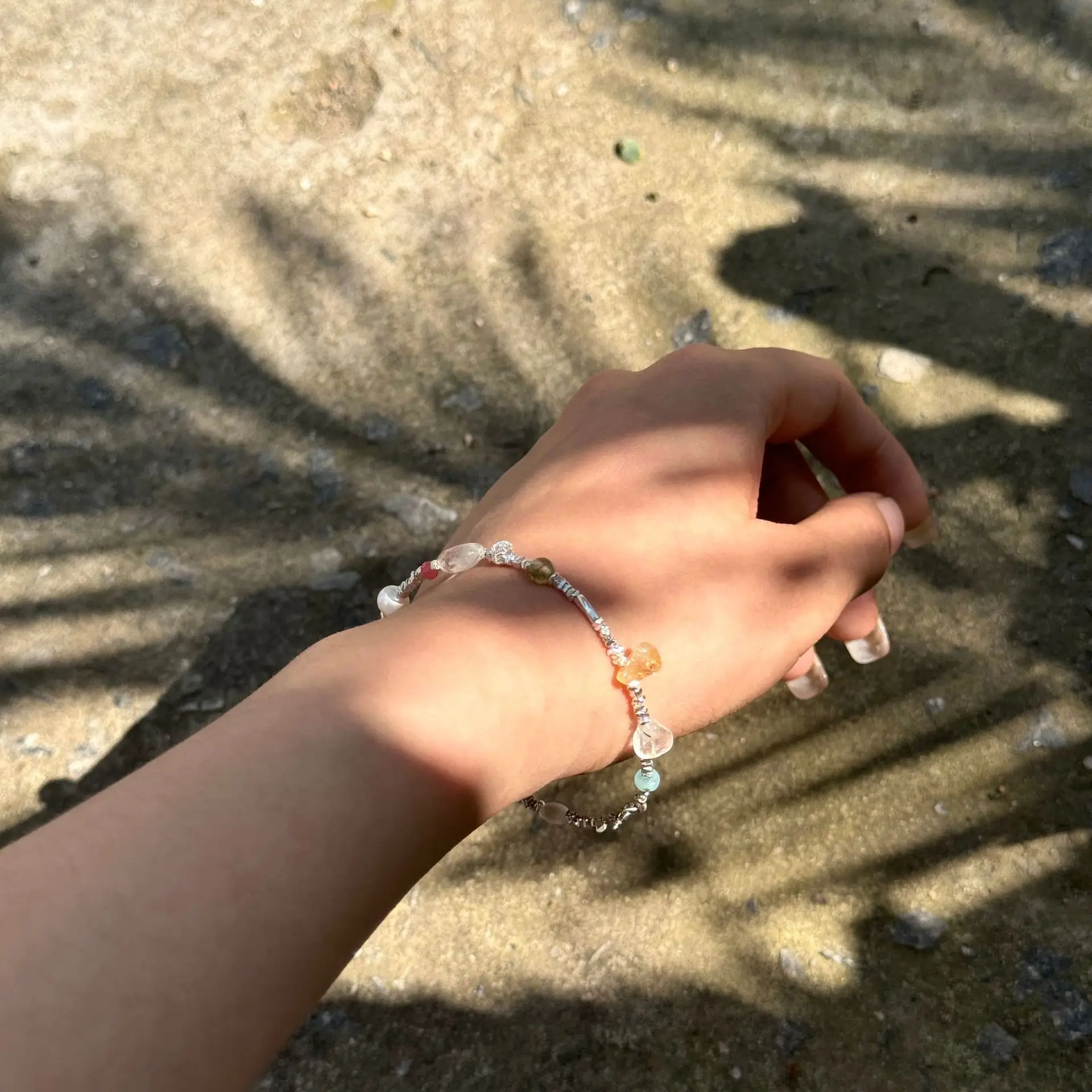 CHOZON S925 Silver Korean Summer Multicolored Stone Gravel Silver Beaded Bracelet Sweet Delicate Commuter Versatile ins Style