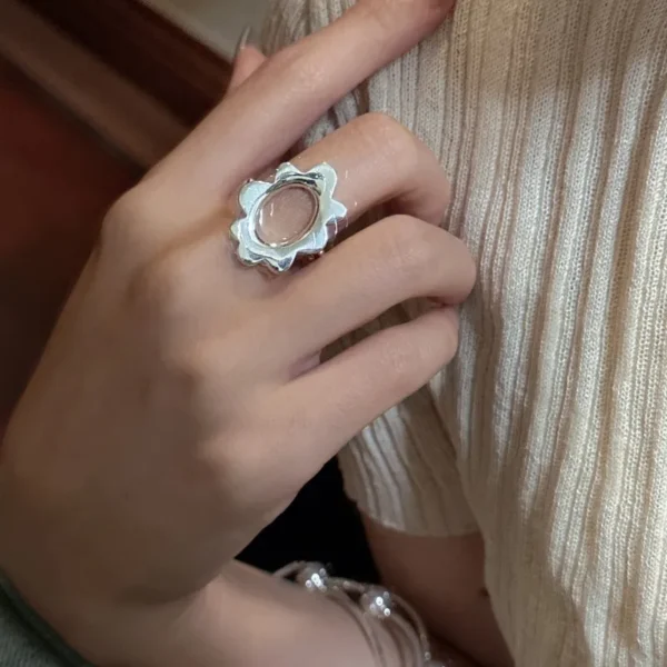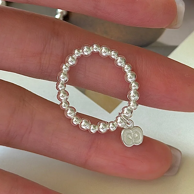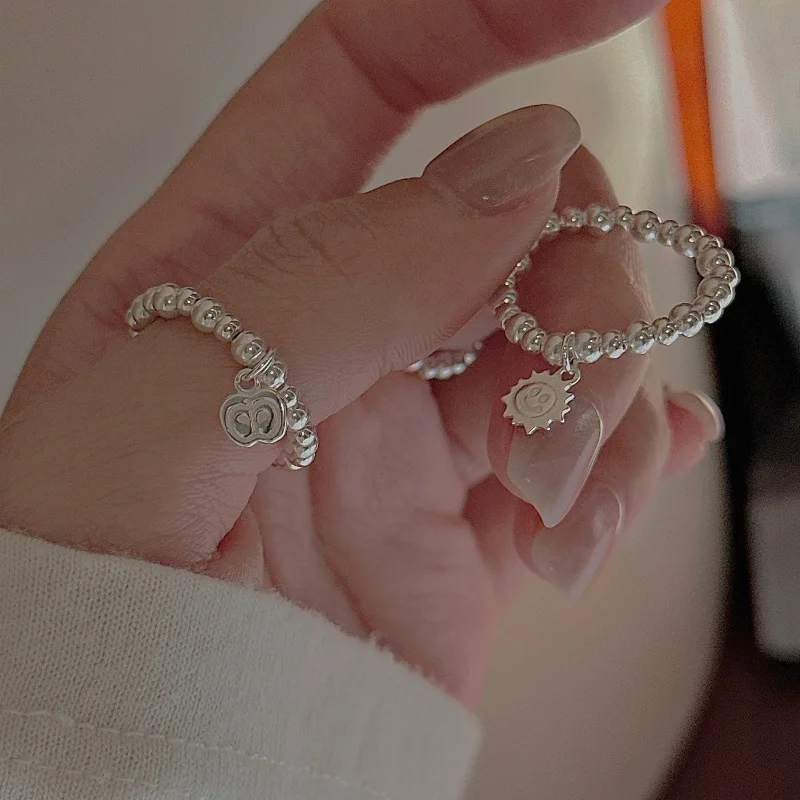 CHOZON S925 Solid Silver Beaded Ring Korean Vintage Stretch Minimalist Jewelry Gift for Women