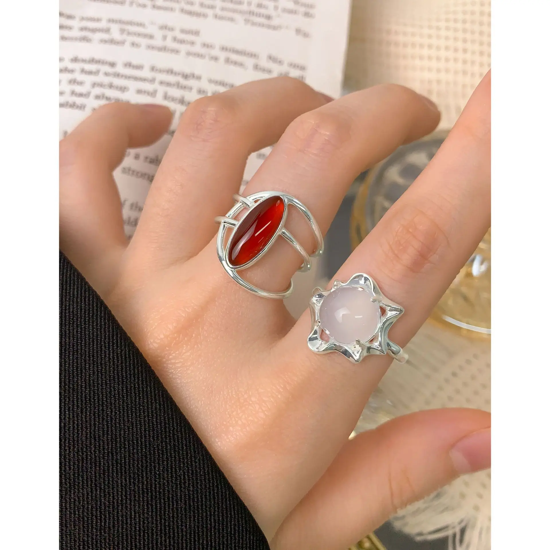 CHOZON S925 Solid Silver Red Agate Adjustable Ring French Bold Wholesale Statement Jewelry for Women