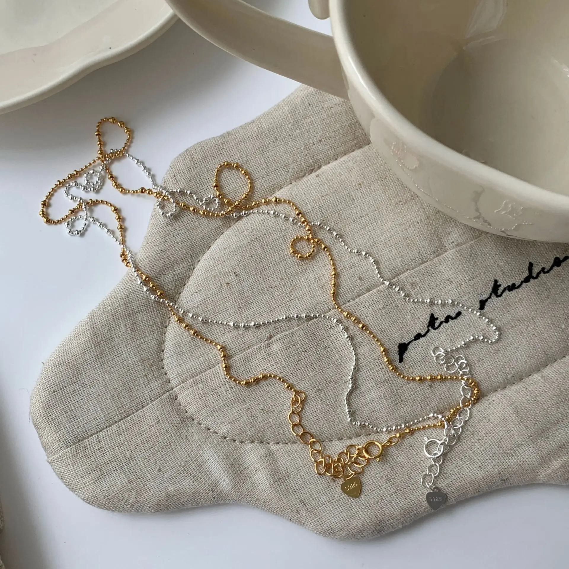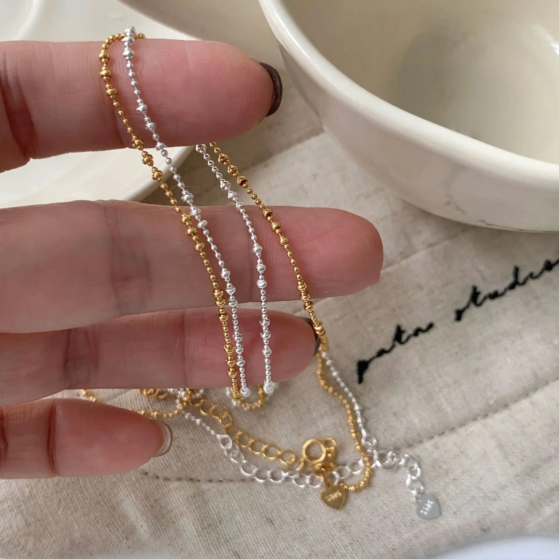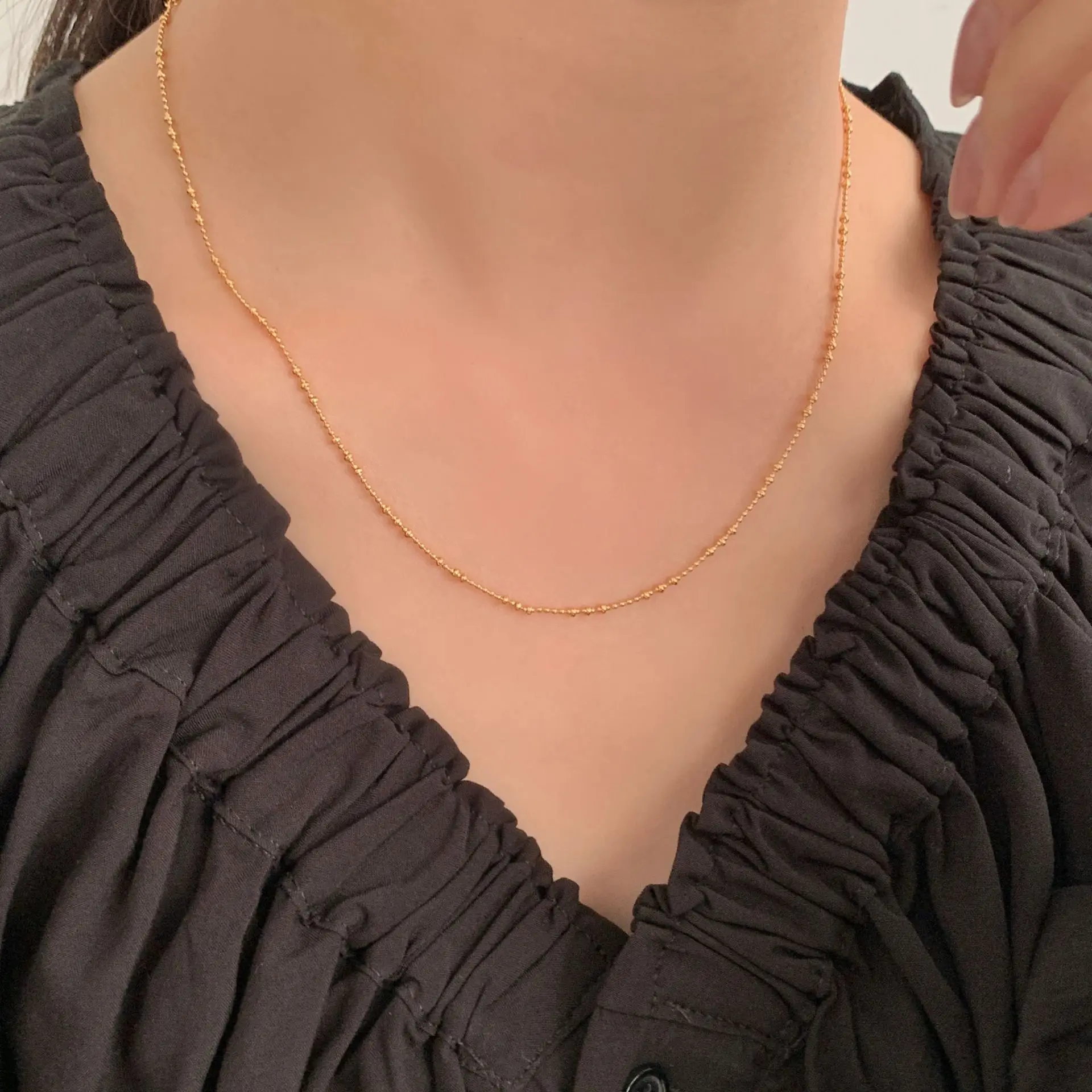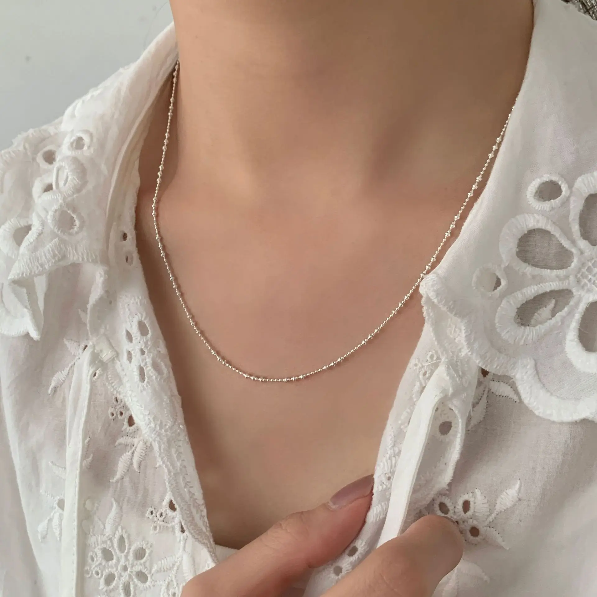 CHOZON S925 Solid Silver Sparkling Bead Necklace French Minimalist Wholesale Dainty Layering Jewelry for Women